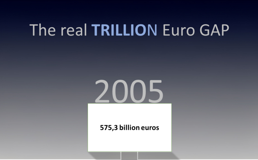 - 2005 GDP: ~€12,000 billion → €180 billion